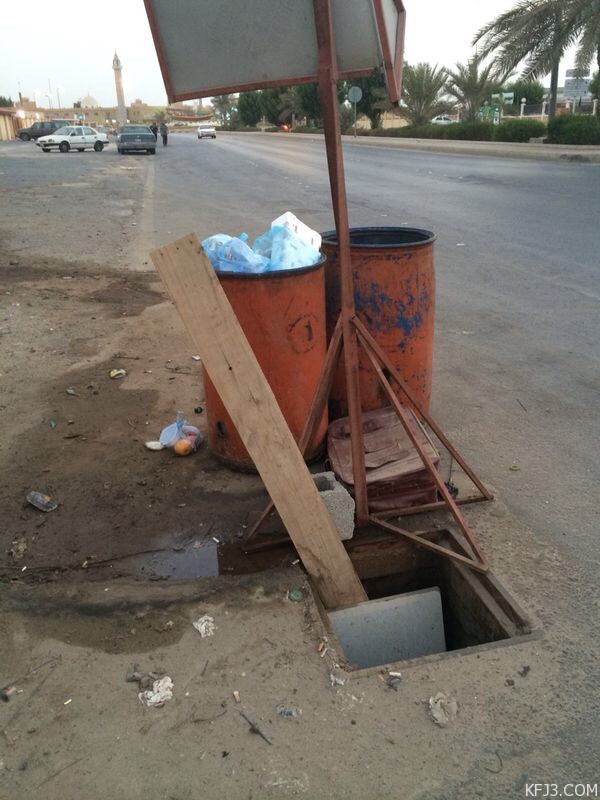رصدت عدسة عدد من متابعي صحيفة « أبعاد الخفجي » وجود حفرة عميقة تابعة للصرف الصحي مفتوحة دون غطاء أمام مكتب الدعوة والإرشاد وتوعية الجاليات الأمرالذي قد يعرض المركبات العابرة والمارة للخطر .