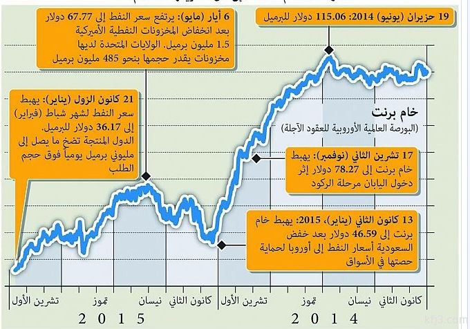 وخسرت أسعار النفط أكثر من ستين بالمئة من قيمتها منذ صيف 2014 عندما كان سعر البرميل يتجاوز المئة دولار.