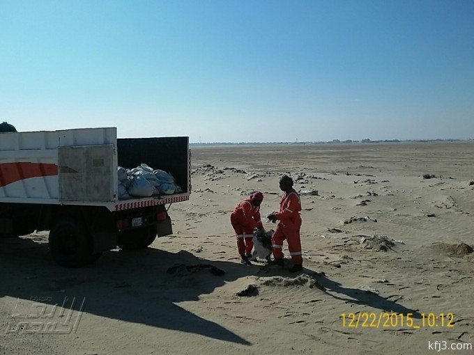 8- إلتقاط جميع النفايات المبعثرة على طول شاطْىء الكورنيش والمسطحات الخضراء ومايلفظه البحر وكنس الجلسات والممشى حيث تم إستهلاك أكثر من (500 )كيس نفايات حجم (50)جالون .