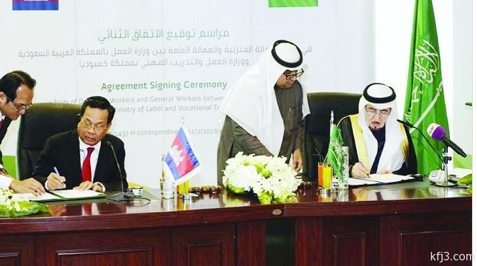 وقال الحقباني خلال حفل التوقيع، إن الاتفاقية الثنائية تأتي استمرارا لجهود وزارة العمل لتعزيز العلاقات الأخوية بينها وبين دول إرسال العمالة المنزلية، ومنها مملكة كمبوديا، كما أنها تأتي في إطار جهود الوزارة الحثيثة لفتح أسواق جديدة لتلبية الطلب المتزايد على العمالة المنزلية.