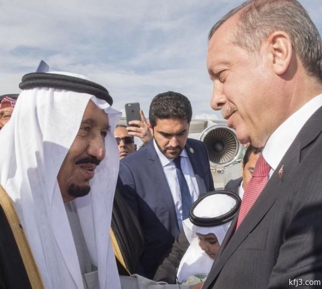 وكان في مقدمة مستقبلي خادم الحرمين الشريفين بمطار ايسنبوا أخاه فخامة الرئيس رجب طيب اردوغان رئيس جمهورية تركيا.