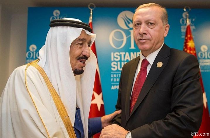 بعث خادم الحرمين الشريفين الملك سلمان بن عبدالعزيز آل سعود – حفظه الله – برقية شكر لفخامة الرئيس رجب طيب أردوغان رئيس الجمهورية التركية إثر مغادرته اسطنبول بعد انتهاء زيارته الرسمية ومشاركته في القمة الإسلامية الثالثة عشرة لمنظمة التعاون الإسلامي فيما يلي نصها :