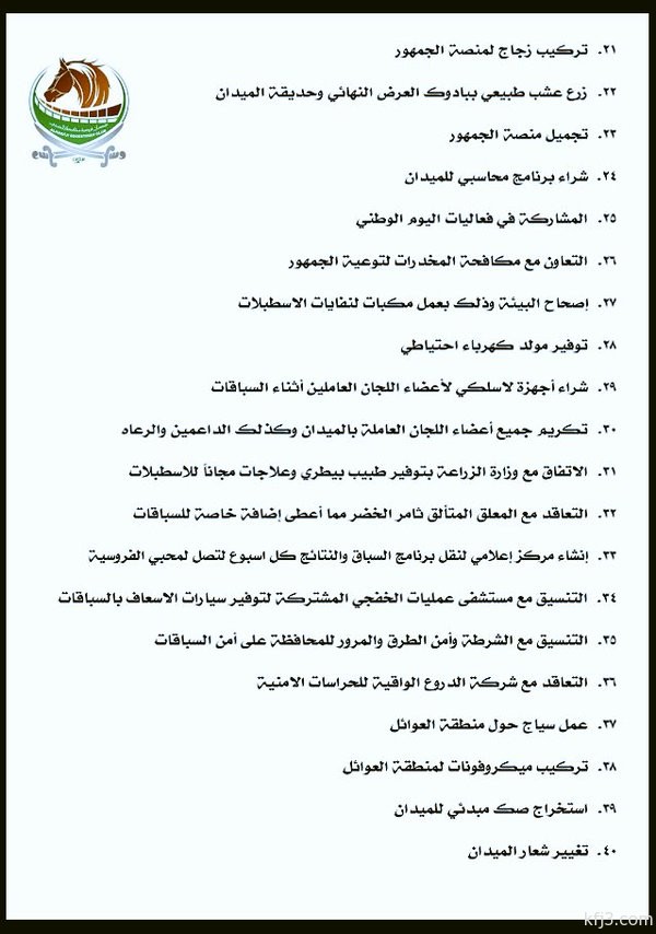 وجاء تقرير ميدان فروسية الخفجي للعام 1437هـ على النحو التالي: