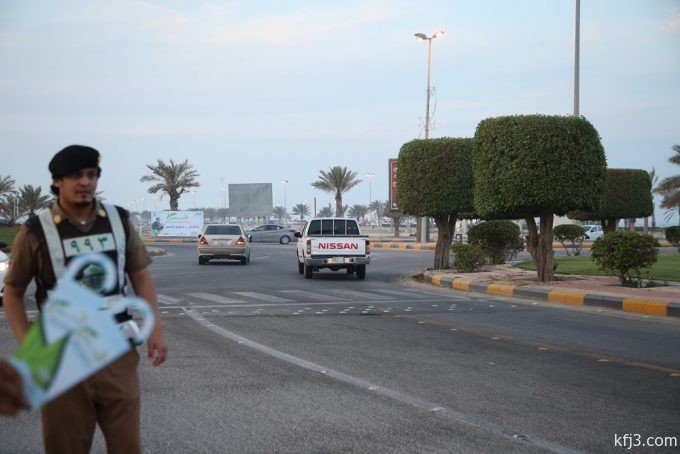 وشارك مرور الخفجي في تنظيم حركة السير اثناء توزيع الهدايا على السيارات , واستمر التوزيع خلال فترة العصر في شارع البلدية وفي شارع الكورنيش وتم توزيع 1500 هدية وهي عبارة عن تعليق داخلي للسيارة يحتوي على عبارات تدعو لحفظ النعمة وفائض الأطعمة والتعريف بالحملة.