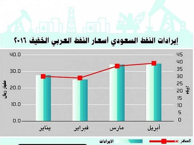 من المتوقع ان تكون المملكة قد صدرت 946.5 مليون برميل من النفط خلال الفترة من يناير وحتى نهاية ابريل 2016 ، وبقيمة 119.9 مليار ريال، أي اقل من نفس الفترة المماثله من العام الماضي بنسبة 35%.