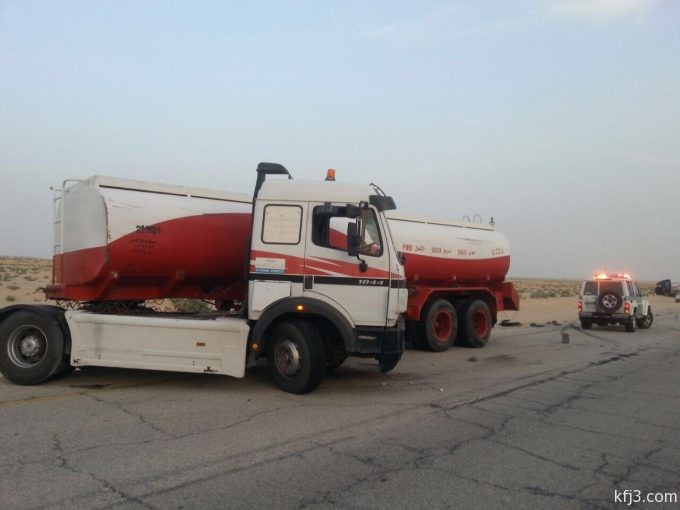 وقع حادث تصادم وجهاً لوجه بين شاحنتين على طريق الخفجي القديم وقد تسبب الحادث في وقوع اصابات مترفقة للسائقين.