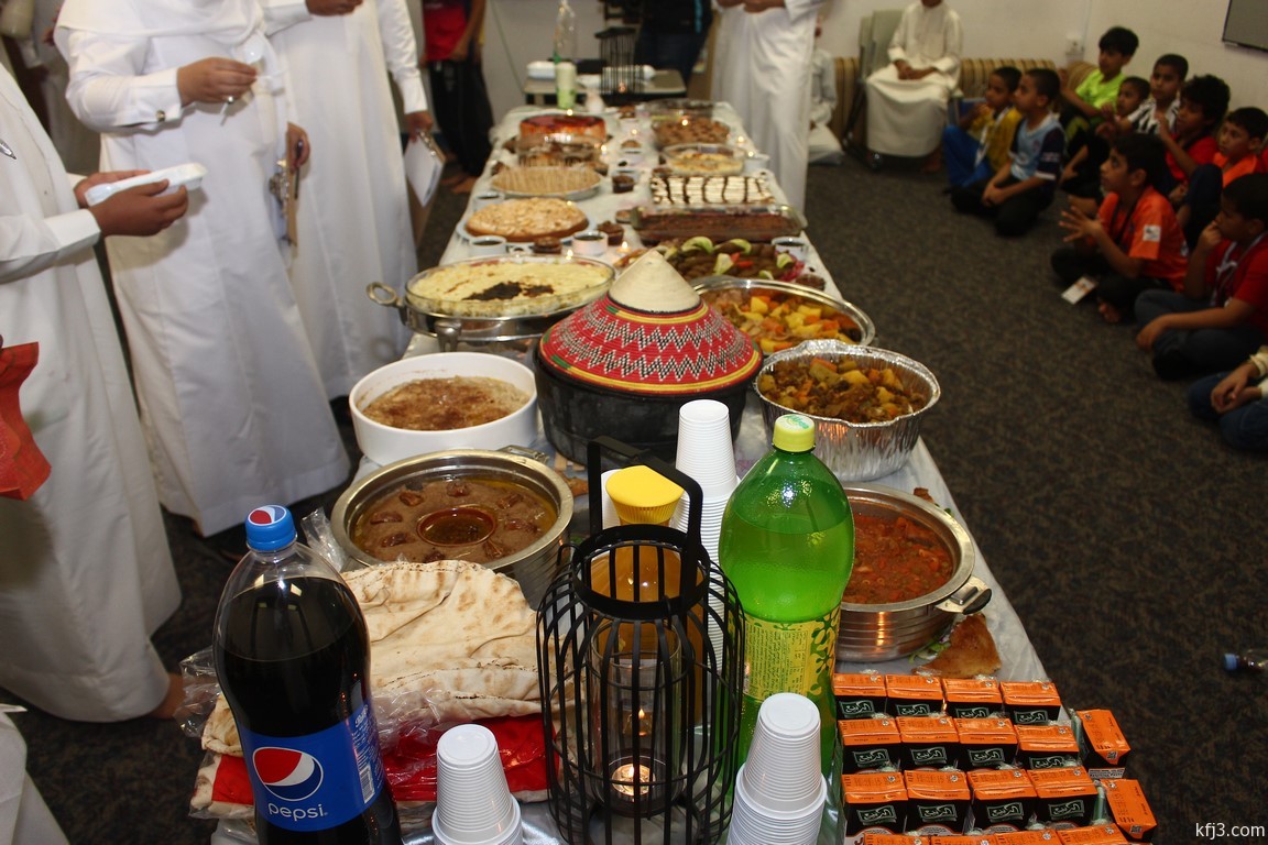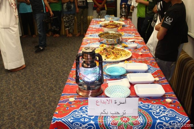 وتنوعت مشاركات الأسر بالإضافة للأطباق بتزين المقر وعبارات الترحيب المختلفة والشيلات وطرق تقديم الأطباق المشاركة .