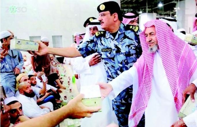 وأفاد الحارثي بأن البرنامج عبارة عن لفتة كريمة للشهداء الذين ضحوا بأرواحهم فداء للوطن وسيتم توزيع كل يوم وجبات صدقة عنهم وتخليداً لذكراهم وذلك بما يقارب 5000 وجبة، مشيراً إلى أنهُ خُصصت لهم أيضاً برامج أخرى بالتعاون مع جمعية كافل وجمعية إنسان كتخصيص أداء عمرة عنهم، وبرنامج سقيا زمزم بالتعاون مع إدارة سقيا زمزم بالمسجد الحرام. رافق نائب الرئيس العام لشؤون المسجد الحرام كل من قائد قوات الحج والعمرة اللواء د. سعود بن عبدالله الخليوي، وقائد قوة أمن المسجد الحرام اللواء محمد وصل الأحمدي، وقائد قوة الطوارئ بمكة المكرمة سعادة العقيد سليم الهذلي.