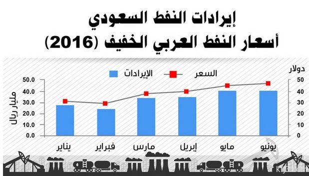 من المتوقع ان تصدر المملكة 1.65 مليار برميل من النفط خلال السبعة شهور من هذا العام وبقيمة 241 مليار ريال، بانخفاض نسبته 28% عن نفس الفترة المماثله من العام الماضي، كما يتوقع بلوغ الاستهلاك المحلي 549 مليون برميل او ما نسبته 25% من اجمالي الانتاج خلال السبعة شهور من 2016.
