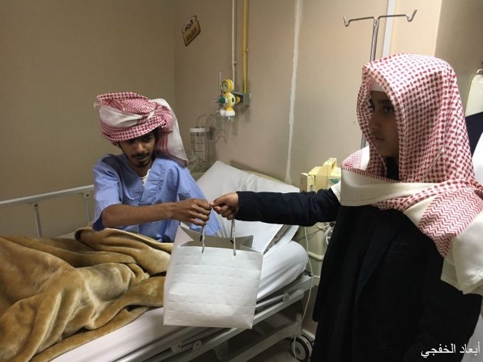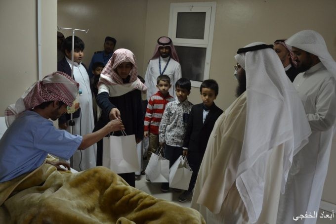 و بعدها قام الطلاب بتوزيع الهدايا على المرضى والكادر الطبي والاداري بالمستشفى وفي ختام الزيارة شكر منسوبي مستشفى الخفجي الاهلي طلاب ومعلمي مجمع تحفيظ القرآن الكريم لما قدموه سائلين المولى العلي القدير ان يوفقهم لتأدية رسالتهم .
