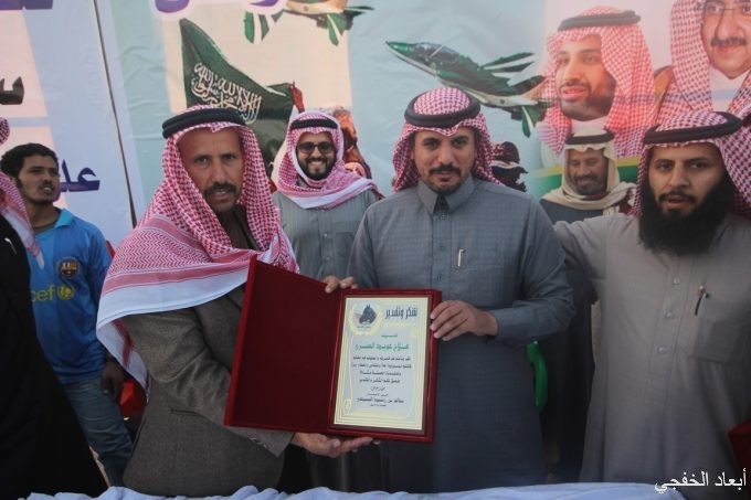 اشكر منظمين السباق اليوم وكما اشكر رجل الاعمال سالم رشيد السبيعي علي الدعم واليوم اعتبره احتفال شباب الخفجي والخيل العربية الاصيلة وكمااشكر مشجعين للشباب ولا ننسي لداعمين للحفل القادم وهما رجل الاعمال فهدي القويعي ورجل الاعمال مرزوق البلوي