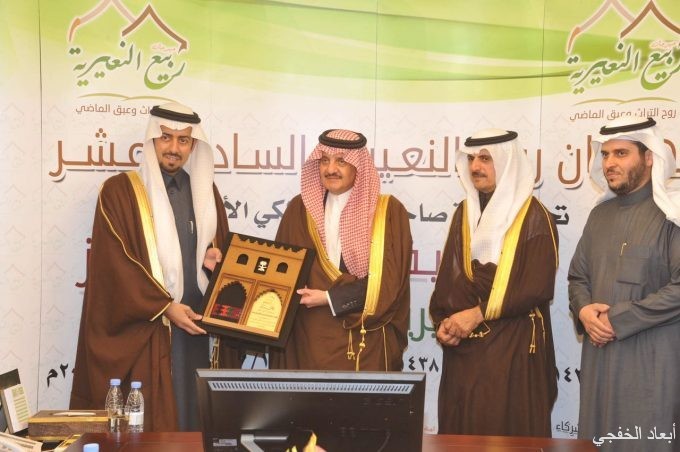 أكد صاحب السمو الملكي الأمير سعود بن نايف بن عبدالعزيز أمير المنطقة الشرقية أهمية المحافظة على التراث والإرث الحضاري لمحافظة النعيرية التي تميزت به وجسدته من خلال هويتها في مهرجان ربيع النعيرية، مبينا سموه بأن محافظة النعيرية مركزاً مهماً للربط بين شمال المملكة وشرقها منذ القدم كما استطاعت جذب الزوار والمتنزهين من خلال ما تقدمه من برامج وفعاليات متميزة على مدار العام.