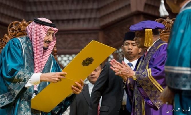 منحت الجامعة الإسلامية العالمية في ماليزيا، خادم الحرمين الشريفين الملك سلمان بن عبدالعزيز آل سعود – حفظه الله – درجة الدكتوراه الفخرية في العلوم السياسية ( خدمة الإسلام والوسطية )، وجائزة الإنجاز الفريد المتميز في خدمة الإسلام والأمة.