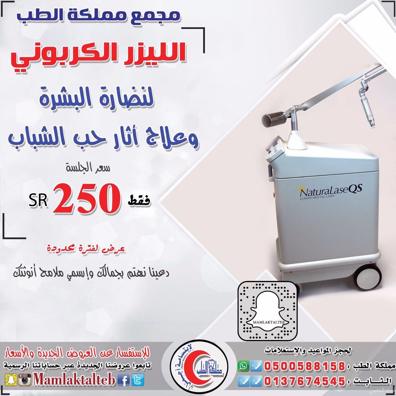 لمتابعة عروض مجمع مملكة الطب عبر الحسابات التالية (تويتر ، انستقرام ، فيس بوك ، سناب شات) .