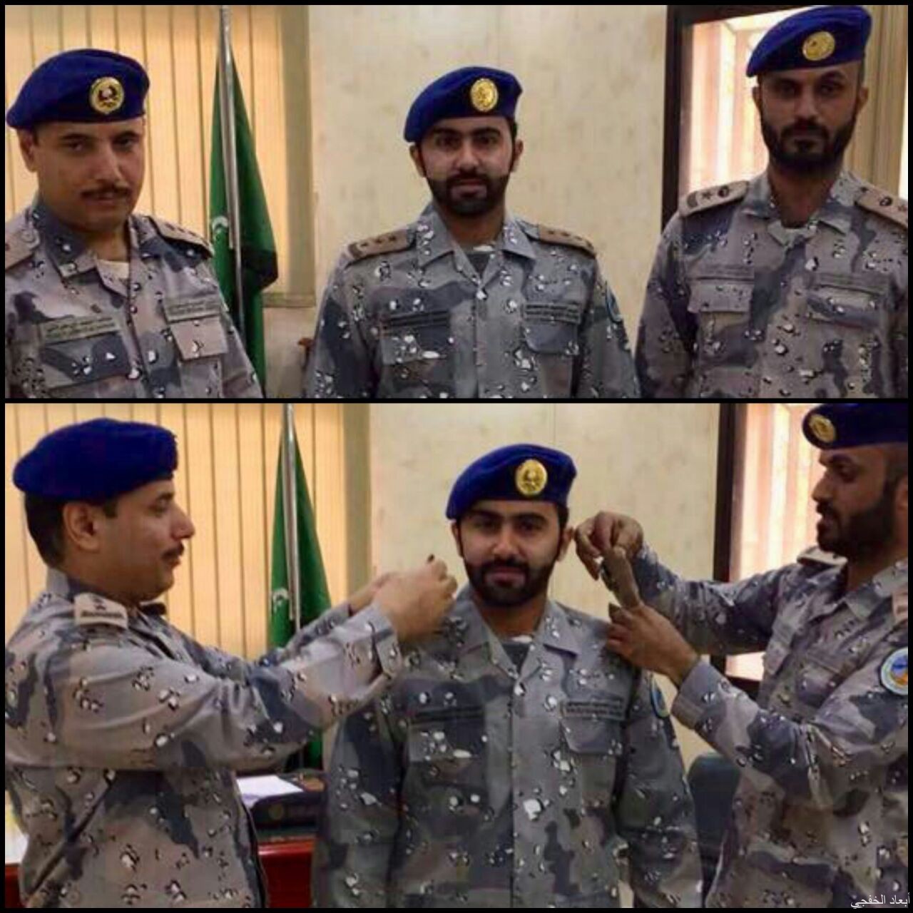 قلد قائد قطاع حرس الحدود بالخفجي العقيد خالد الزهراني، محمد بن زيد السهلي رتبته الجديده «نقيب».