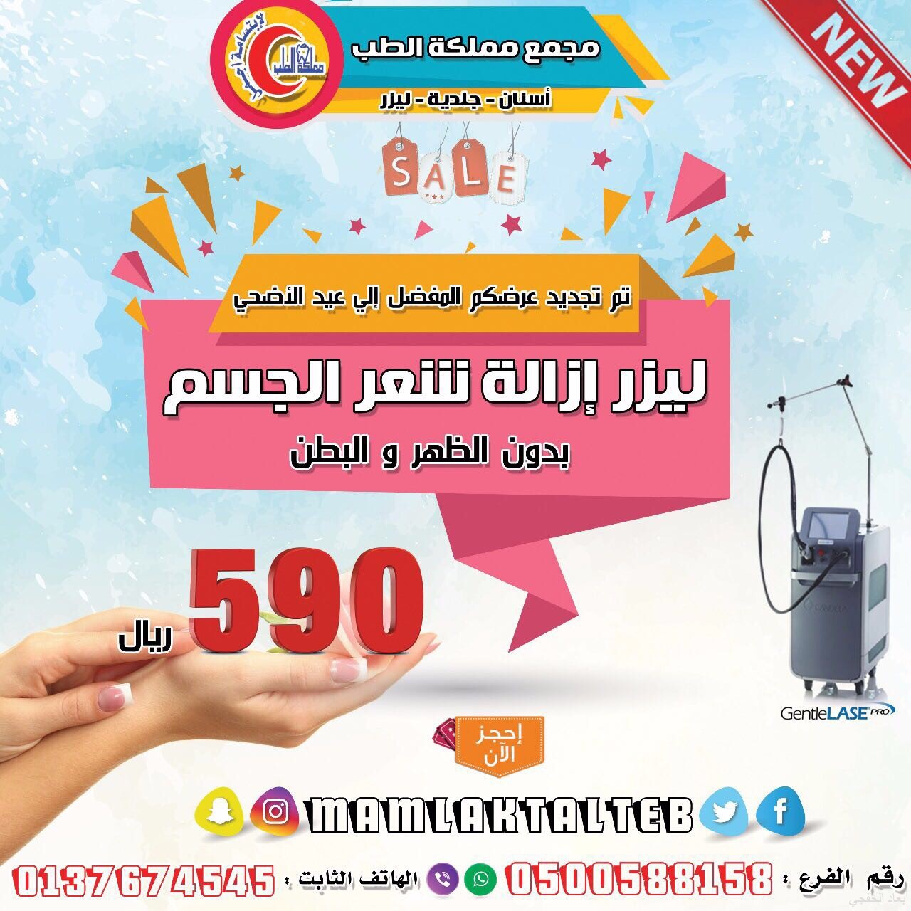 * ليزر إزالة شعر الجسم بدون الظهر والبطن فقط بـ 590 ريال .