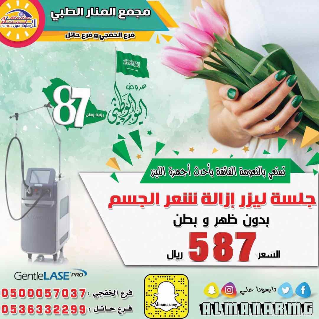 أبعاد الخفجي – الخفجي: يقدم مجمع المنار الطبي بمناسبة اليوم الوطني السابع والثمانون العديد من العروض المميزة بهذه المناسبة ، حيث تشمل العديد من الخدمات المتعلقة بالاسنان والتجميل.