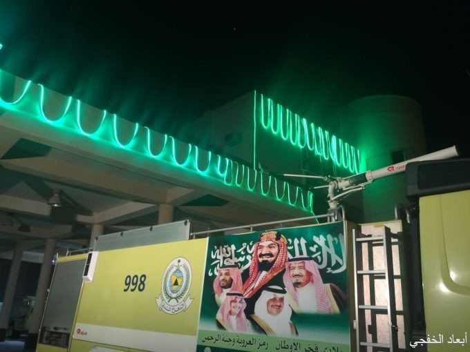 شاركت إدارة الدفاع المدني بمحافظة الخفجي في إحتفالية اليوم الوطني للمملكة 87 من خلال تزيين مقرها وآلياتها وسياراتها بالألوان الخضراء واللوحات والشعارات والعبارات الوطنية، مع توزيع الأعلام على المارين من قِبل دوريات السلامة.