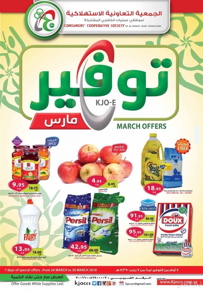 أعلنت الجمعية التعاونية الاستهلاكية لموظفي عمليات الخفجي المشتركة عن انطلاق العروض الشهرية والتي تبدأ من يوم ٧ رجب ١٤٣٩هـ ولمدة ١٠ أيام ويسري العرض حتى نفاذ الكمية.
