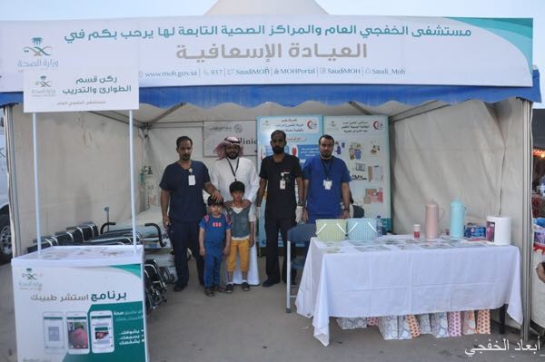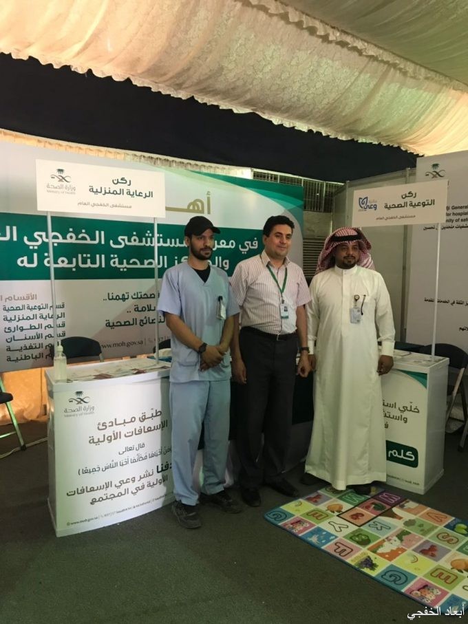 حظيت مشاركة مستشفى الخفجي العام والمراكز التابعة له بالاركان التوعوية في مهرجان كلنا الخفجي السادس الذي أقيم تحت شعار (أعطنا من وقتك القليل فصحتك تهمنا) بزيارة قرابة 10 الاف زائر يومياً للاطلاع على الخدمات المقدمة والبرامج التوعوية والتثقيفية لزوار المهرجان.