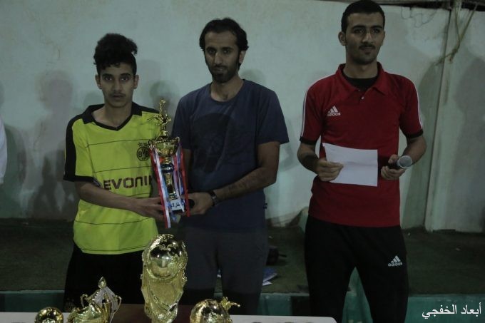 اختتمت بطولة شباب الخفجي الذي نظمها الكابتن يوسف العتيبي مساء امس الخميس 3-8-1439هـ مبارياتها ، بمنافسه نهائية حماسيه وممتعه بين فريقي انترميلان والعميد في الملعب الصناعي حيث بدأت المباراة بضغط من الفريقين الا ان فريق الانتر اختطف هدفه الاول قبل نهاية الشوط الأول سجله اللاعب يوسف عقيل وفي الشوط الثاني حاول فريق العميد معادلة النتيجة لكن دفاع الانتر كان صامدا حتى نهاية المباراة لتنتهي بفوز انترميلان بهدف مقابل لاشيء للعميد .