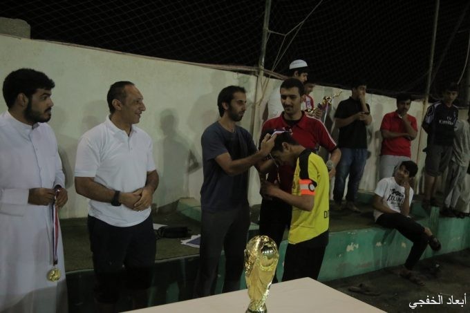 بعدها كرم حمد محمد المري هداف البطولة جابر السفياني وافضل لاعب حوشه واللاعب المثالي مروان مدالله وأفضل مدافع بسام العنزي واللاعب المثالي الصاعد وليد مدالله الشراري كما تم تكريم مساعد الحكم عبدالله ابراهيم الشمري ومعلق المباراة خالد محمد وفريق العميد المركز الثاني بكأس وميداليات فضية وفريق انترميلان بكأس البطولة والميداليات الذهبية.