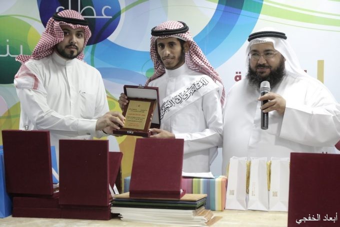 أقام مجمع تحفيظ القران الكريم بمحافظة الخفجي حفلاً لختام انشطة التوعية الفكرية ( حصانة ) وتخريج طلاب الثالث ثانوي ،وبدأ الحفل الذي قدمه سلطان فهد الخلف بعرض مرئي عن انشطة التوعية الفكرية، ثم تلاوة آيات من القرآن الكريم بصوت عبدالله سالمين ، تلاها كلمة رائد النشاط الاستاذ عبدالرحمن المزيرعي .