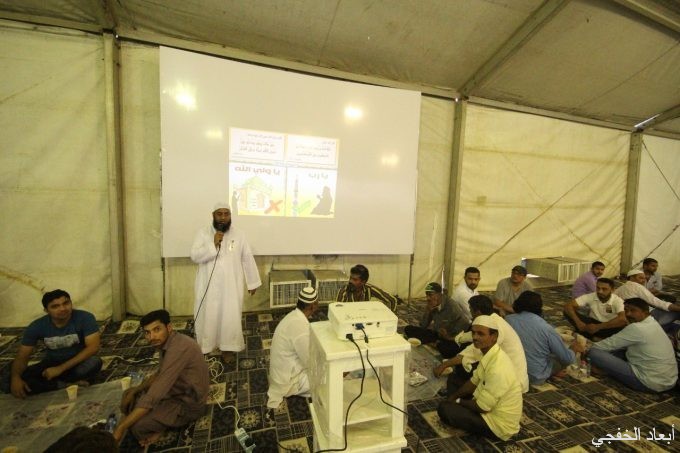 وعن الدور الدعوي في المخيمات قال الحايطي كان هذا الجانب من أولويات عملنا في المخيمات حيث تم إعداد جدول خاص لزيارات الدعاة للمخيمات وإلقاء الكلمات التوجيهية والتي تهدف إلى تصحيح وتبصير المسلمين بالعقيدة الصحيحة وتعليم الطهارة والصلاة بطريقة العرض المرئي عبر البروجكتر ، وكذلك تعليم صفة العمرة ودعوة غير المسلمين إلى الإسلام من الذين يحضرون للمخيمات .
