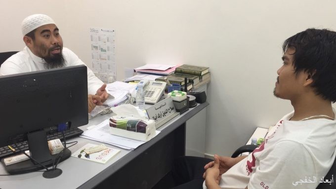 وأضاف بفضل الله ثم بجهود الدعاة وتعاون فد بلغ عدد المسلمين الجدد ٦ أشخاص أعلنوا إسلامهم في المكتب منذ إنطلاقة رمضان الفضيل من روحانية وأثر على النفوس، مشيراً إلى أن المكتب أطلق خدمة دعوة الخدم والسائقين في المنازل عبر الهاتف بلغات مختلفة، حيث تسهل هذه الخدمة مرونة التواصل بين الكفلاء والمكتب لدعوة المكفولين للإسلام.