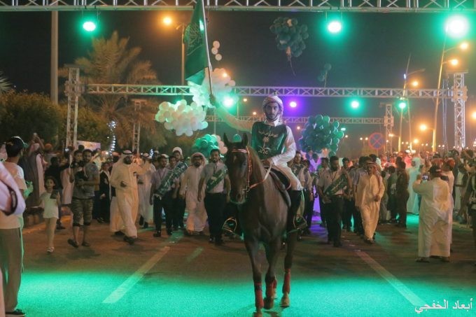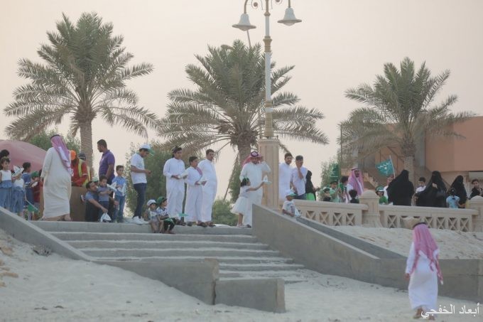 وبدأت الفعاليات منذ فترة العصر باستعراض الزوارق البحرية الذي نفذها قطاع حرس الحدود بالخفجي ، وإقامة عدد من المسابقات للأطفال والأهالي وتوزيع الأعلام الوطنية.