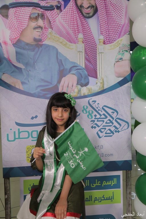 وجاءت الفعاليات بإقامة ركن للرسم على الوجوه باللون الأخضر والأبيض عن طريق رسامات من فتيات الخفجي، كذلك ركن التصوير والطباعة الفورية وتعليق الصور على لوحة تحمل عنوان «88 صورة بعيون وطنية» كما شارك في الفعالية فريق صناع المرح حيث قدموا «الآيسكريم» على الحضور بالمجان.