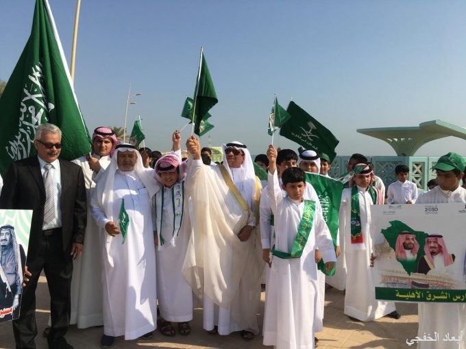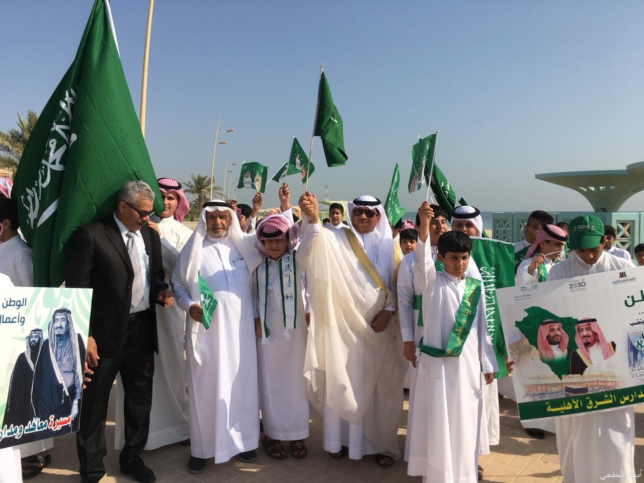 نظمت مدارس الشرق الأهلية الابتدائية والمتوسطة مسيرة طلابية بمشاركة طالبات المرحلة الابتدائية وطلاب المرحلتين الابتدائية والمتوسطة بمناسبة اليوم الوطني الثامن والثمانون بمشاركة محافظ الخفجي محمد سلطان الهزاع ورئيس مجلس ادارة معاهد ومدارس الشرق الأهلية رجل الأعمال محمد سليمان البلوي وبحضور مدير مكتب التعليم بالخفجي منصور المضيبري وذلك في كورنيش محافظة الخفجي.