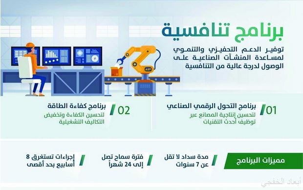 وكشف الصندوق الصناعي حول المتطلبات للاستفادة من برنامج “تنافسية” عن أن المتطلبات سهلة وتتضمن عملاء جدداً أو حاليين ممن يتمتعون بوضع ائتماني جيد، وأن تكون المشروعات قائمة ولها قوائم مالية لآخر ثلاث سنوات، ونتائج حقيقية في تقليل استهلاك الطاقة أو تكلفتها وزيادة الكفاءة التشغيلية، وتقنية مجربة تجارياً لا تغير في القدرة الإنتاجية لبرنامج كفاءة الطاقة وزيادة بحد أقصى 20 % لبرنامج التحول الرقمي الصناعي، دراسة جدوى وتوقعات المصاريف الرأس مالية وتطبيق الشروط والأحكام.