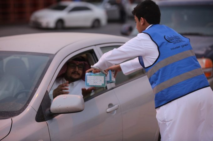 وبعدها اتجه الفريق للبرنامج الآخر حيث قدم الفريق عدد من الوجبات لإفطار الصائمين بشوارع محافظة الخفجي بالتعاون مع حملة رمضان امان والتي تهدف الى توعية السائقين والحد من السرعة والحوادث قبل اللحاق للافطار حيث لاقت هذه البادرة إستحسان الاهالي .