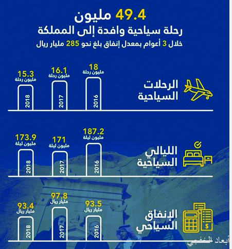 قالت الهيئة العامة للسياحة والتراث الوطني: إن المملكة استقبلت نحو 50 مليون رحلة سياحية وافدة خلال آخر 3 أعوام.
