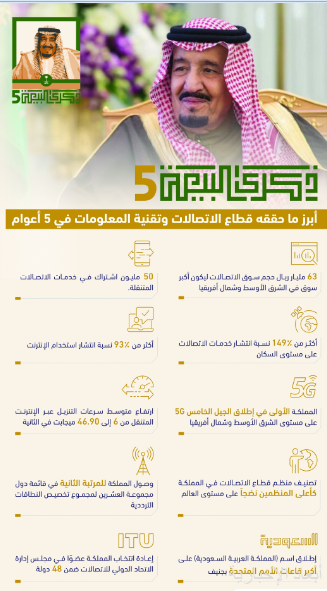 وأضاف معالي محافظ هيئة الاتصالات وتقنية المعلومات أن الدعم والرعاية اللتين يحظى بهما قطاع الاتصالات وتقنية المعلومات في المملكة من لدن حكومة خادم الحرمين الشريفين وسمو ولي عهده الأمين -حفظهما الله- قد بوَّأت القطاع مكانةً رائدةً على مستوى قطاعات الاتصالات وتقنية المعلومات في العالم، منوهاً في هذا السياق بما شهده القطاع خلال 5 أعوام من قفزات تنموية كبيرة، إذ وصل حجم سوق الاتصالات وتقنية المعلومات في المملكة إلى (63) مليار ريال، ليكون بذلك أكبر سوق اتصالات في الشرق الأوسط وشمال إفريقيا.