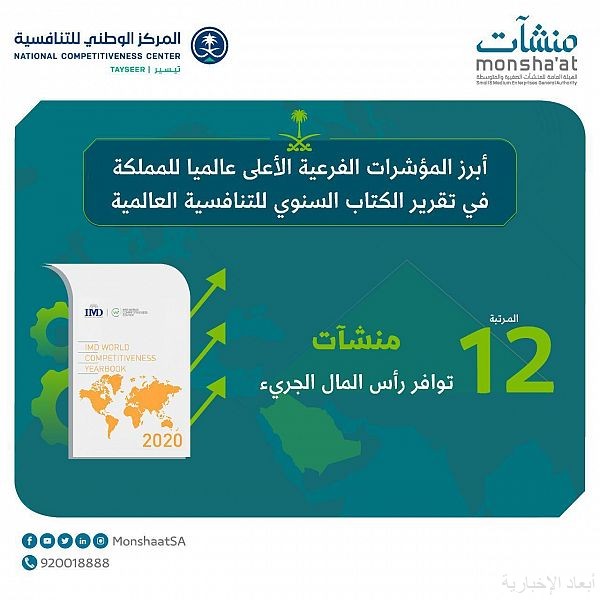 ويأتي هذا الترتيب انعكاسا لحرص الهيئة العامة للمنشآت الصغيرة والمتوسطة “منشآت” على إيجاد بيئة تنافسية تشجع دخول منشآت جديدة إلى السوق وتمكين المنشآت الصغيرة والمتوسطة من النمو والتوسع، وإيجاد الحلول التمويلية المناسبة والفرص الاستثمارية، وذلك لرفع مساهمتها في الناتج المحلي الإجمالي إلى 35% في 2030م.