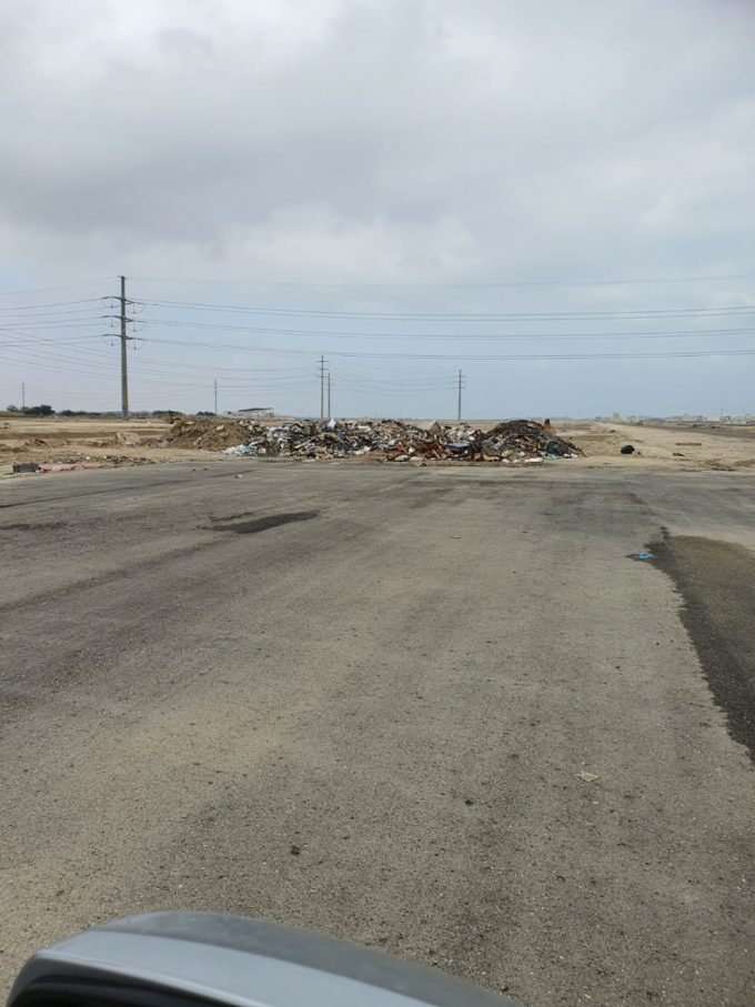 رصد أحد المواطنين وجود أكوام لمخلفات بناء عند نهاية المرحلة التي توقفت عندها أعمال السفلتة بطريق ااـ ١٠٠ غرب الخفجي وبالتحديد المسار الأيسر.
