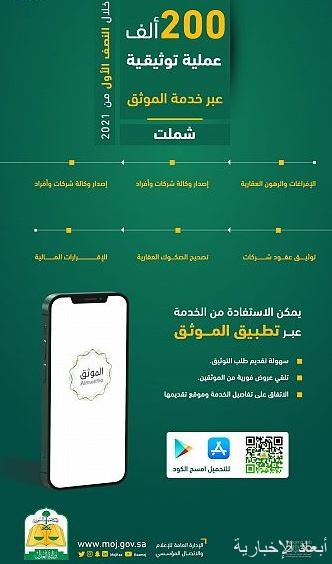 وأشارت الوزارة إلى أن الخدمة تُمكن المستفيدين من طلب خدمات التوثيق عن طريق التطبيق الخاص بخدمة الموثق والمتوفر على الأجهزة الذكية من خلال متجري أبل وقوقل بلاي.