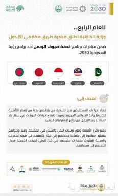 أطلقت وزارة الداخلية مبادرة “طريق مكة” ضمن مبادرات برنامج خدمة ضيوف الرحمن أحد برامج رؤية السعودية 2030 وذلك في خمس دول شملت باكستان وماليزيا وإندونيسيا والمغرب وبنجلاديش.