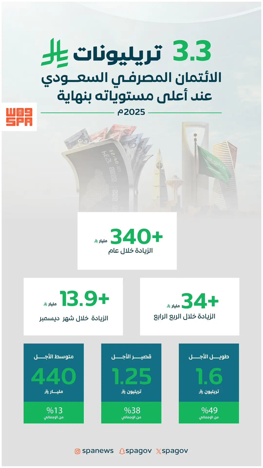 الائتمان المصرفي السعودي عند أعلى مستوياته بـ(3.3) تريليونات ريال بنهاية 2025 م