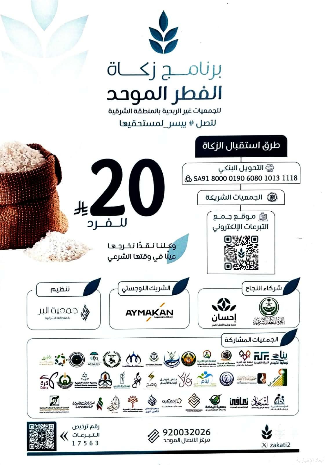 جمعية البر بالخفجي تبدأ استقبال زكاة الفطر لهذا العام بالشراكة مع برنامج زكاة الفطر الموحّد بالمنطقة الشرقية