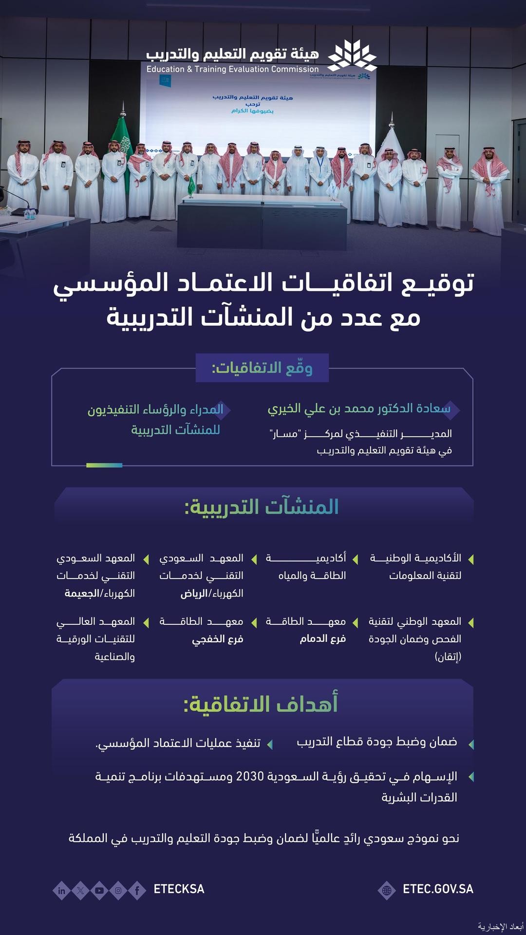 هيئة تقويم التعليم والتدريب توقيع اتفاقيات تنفيذ الاعتماد المؤسسي مع عدد من المنشآت التدريبية