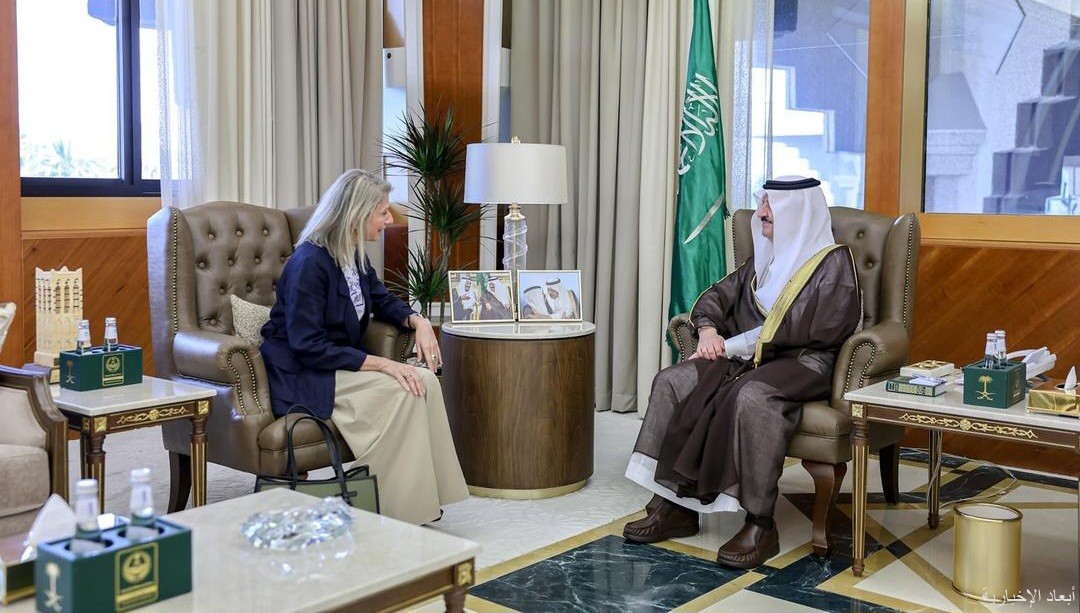 ورحب سموه بالسفيرة في المنطقة، وجرى خلال اللقاء تبادل الأحاديث الودية ومناقشة عدد من الموضوعات ذات الاهتمام المشترك.